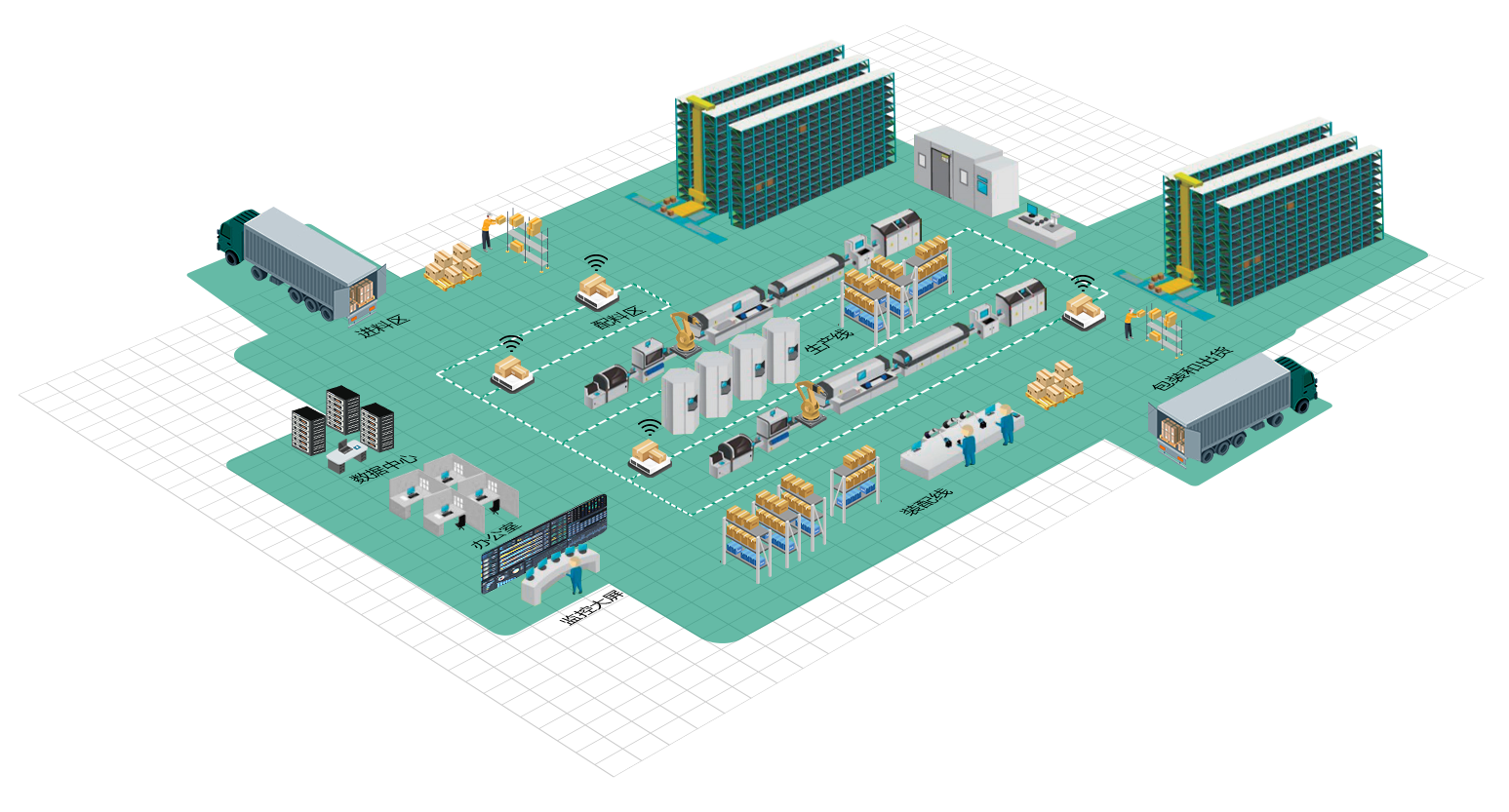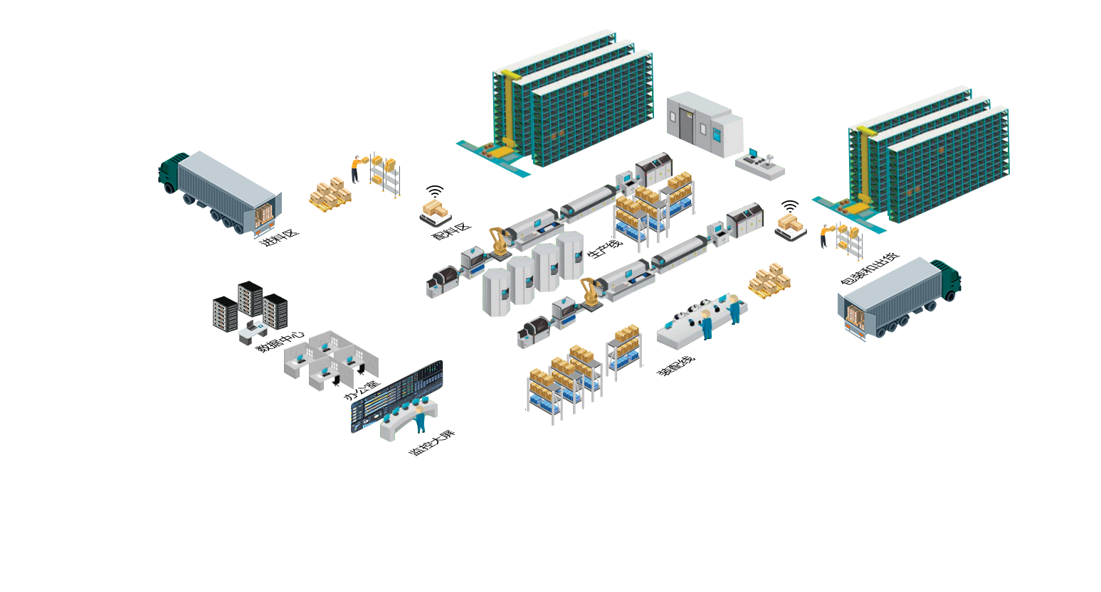 工業機器人、激光刻碼機、AGV、自動立庫、燈光揀選庫、