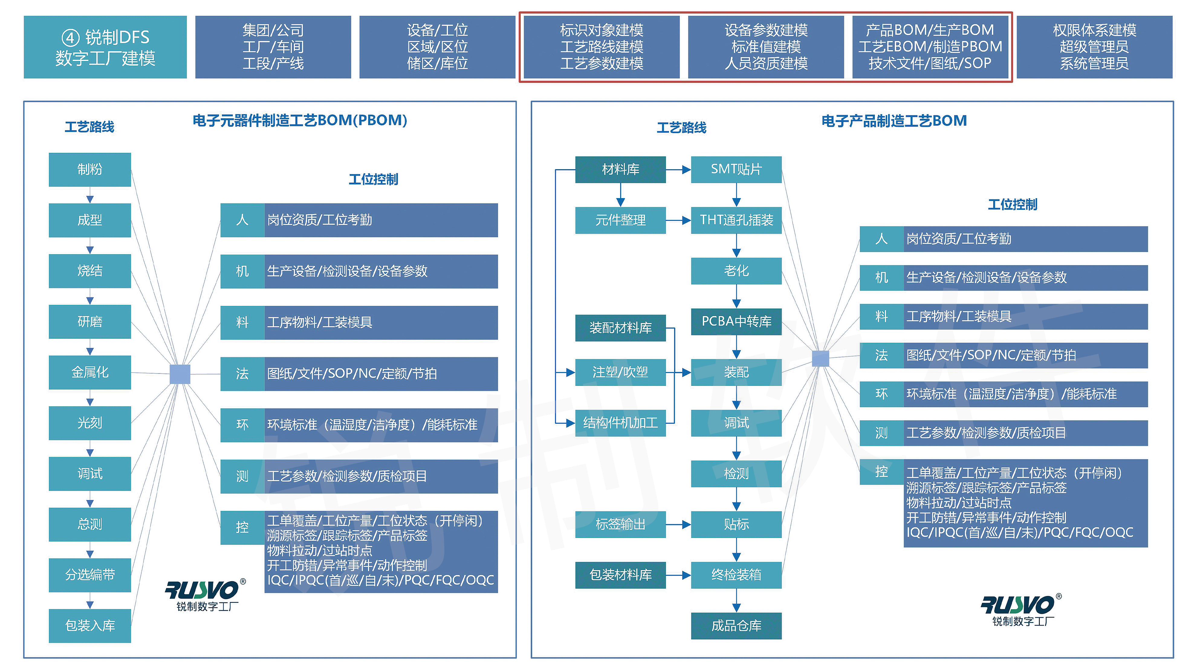 >能夠自由搭建各種類型生產模式的數字化生產車間,支持車間工段、工序工步、設備機臺、班組人員、工藝路線、設備參數、控制對象的矩陣式建模,能夠對車間中的"人"、"機"、"料"、"法"、"環"、"測"六個方面建立數字化映射工廠模型。